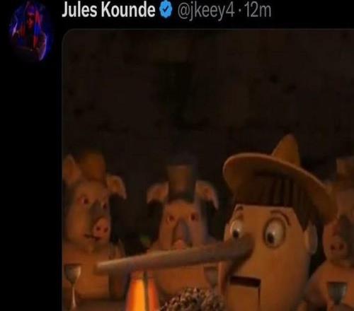記者稱孔德受傷將缺戰(zhàn)西超杯,球員社媒發(fā)匹諾曹表情回應(yīng)
