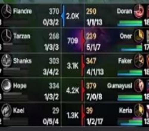 第一把就武魂真身Gumayusi首局韋魯斯完美表現(xiàn)打出708的戰(zhàn)績(jī)!