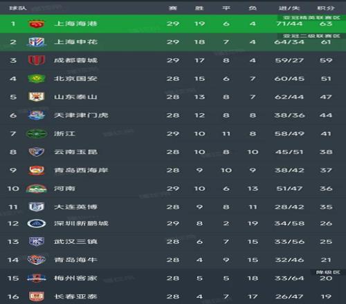 中超第29輪結(jié)束了三場(chǎng)比賽,最新積分榜如下!