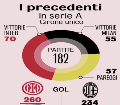 意甲交鋒當(dāng)中,國米70勝55負(fù)57平占優(yōu);而在雙方總計(jì)244次歷史交鋒中,國際米蘭以91勝占據(jù)上風(fēng),紅黑軍團(tuán)則取得82場(chǎng)勝利,另有71次雙方握手言和。