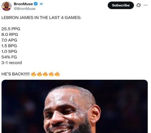 也讓開季至今整體數(shù)據(jù)提升至18.6分5.8籃板7.5助攻0.8搶斷0.7蓋帽,投籃命中率也回暖至46.9%,40歲老詹用行動(dòng)證明他還能打。