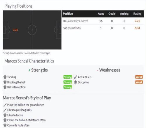 不過除了能直塞球和發(fā)起進(jìn)攻,以及具備一定的帶球向前推進(jìn)能力外,塞內(nèi)西在防守端的表現(xiàn)很難讓人滿意。