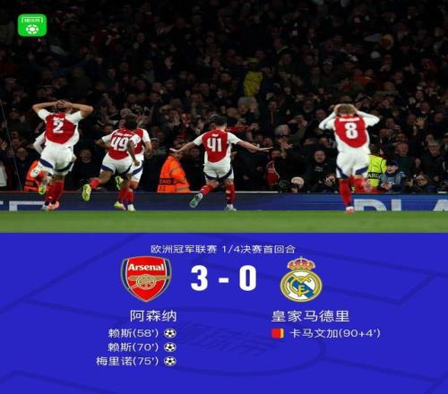 4、24/25賽季歐冠1/4決賽首回合,阿森納3-0皇馬 熱度值:3339035