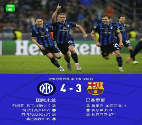 1、24/25賽季歐冠半決賽次回合:國米4-3巴薩晉級歐冠決賽 熱度值:3868750